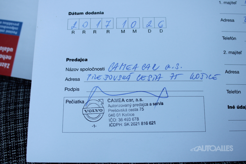 Vozidlo ako nové kupované v SR / po 2. majiteľovi a nebolo nikdy havarované ani poškodené. STAV NOVÉHO AUTA!!!. Exteriér aj interiér je naozaj v takom stave, ako keby bolo nové. Krásny bledý a voňavý interiér, povrchy bez poškodenia. Na vozidle sú namontované zimné pneumatiky na 16“ al. diskoch. Záruka na skutočný stav tachometra. Ku vozidlu je aj sezónne prezutie /4ks letné pneumatiky na 16“ al. diskoch Volvo. K dispozícii je originálna servisná kniha a dva kľúče. Originálne najazdené kilometre si môžete overiť aj u ktoréhokoľvek oficiálneho predajcu VOLVO. Ku vozidlu je vystavený výpis zo štátneho Registra prevádzkových záznamov vozidiel - ODO-PASS, ktorý zobrazuje históriu najazdených kilometrov vozidla! Na vozidlo je možný úver aj bez akontácie! Vybavíme ho priamo u nás na počkanie, výšku akontácie a splátky Si nastavíte sami. AUTOALLES: najväčší slovenský autobazár, už od roku 1990, doživotná záruka na pôvod vozidla s garanciou vrátenia peňazí. Tešíme sa na vašu návštevu.