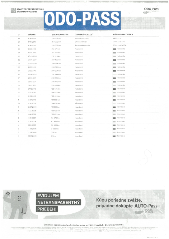 Vozidlo dovezené zo zahraničia / Holandsko. Skelet vozidla je nehavarovaný. Ku vozidlu je vystavený výpis zo štátneho Registra prevádzkových záznamov vozidiel - ODO-PASS, ktorý zobrazuje históriu najazdených kilometrov vozidla. Pravidelne servisované, posledná servisná prehliadka 11/2025 pri 417 000 km - výmena oleja a filtrov, rozvody menené pri 380 000 km. LPG montované 3/2019. STK platná do 9/2026, EK platná do 1/2028. Vozidlo v zachovalom stave, jazdené iba dlhé trasy. Karoséria má vzhľadom na vek a počet najazdených kilometrov menšie nedostatky, technicky auto v poriadku, plne pojazdné a udržiavané. Motor má pekný chod, podvozok a nápravy v dobrom stave. Obuté celoročné pneumatiky na hliníkových diskoch 215/60 R17, k dispozícií aj druhá sada pneumatík na hliníkových diskoch. Ku vozidlu je 2 x kľúč. AUTOALLES: najväčší slovenský autobazár, už od roku 1990, doživotná záruka na pôvod vozidla s garanciou vrátenia peňazí. Tešíme sa na vašu návštevu.